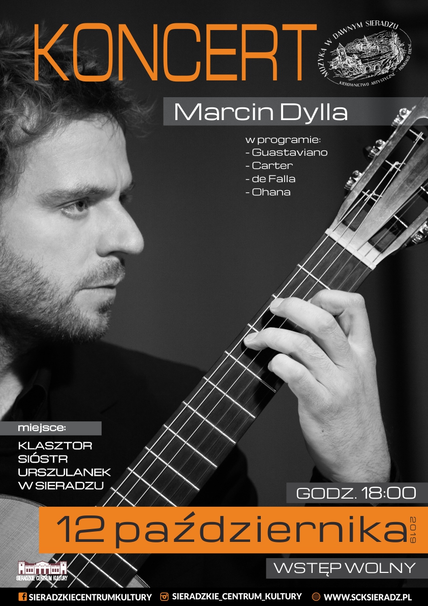 12 października o godz. 18.00 w Klasztorze Sióstr Urszulanek w Sieradzu z koncertem gitarowym wystąpi Marcin Dylla. W programie imprezy, która organizowana jest w ramach cyklu "Muzyka w dawnym Sieradzu", znajdą się utwory takich artystów jak: Guastaviano, Carter, de Falla czy Ohan. Wstęp wolny.