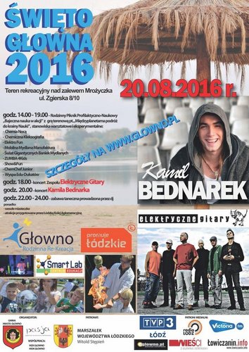 W sobotę, 20 sierpnia, już od godziny 14.00 nad zalewem Mrożyczka w Głownie odbywać się będzie Święto Miasta z piknikiem rodzinnym Bajeczna nauka w akcji z pokazem eksperymentów fizycznych i chemicznych, grą terenową oraz z konceratmi gwiazd: Elektrycznych Gitar i Kamila Bednarka. A w niedzielę kolejny piknik w ramach Kreatywnego Lata Rodzinnego w Głownie.