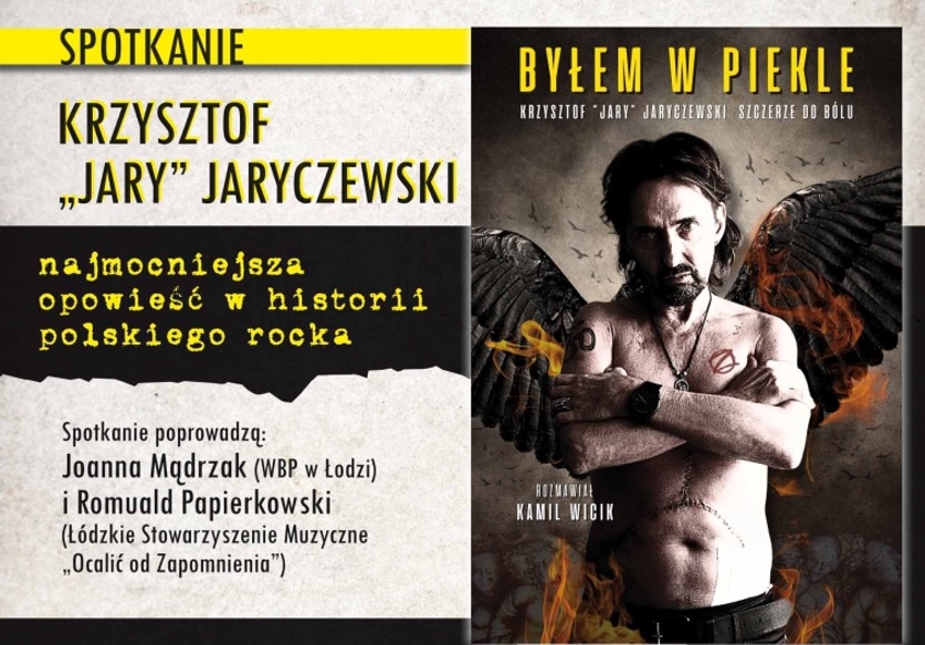 Miejsce: sala konferencyjna Biblioteki, ul. Gdańska 100/102, II piętro.To bezkompromisowa opowieść o życiu i o muzyce, szczera do bólu, nie oszczędzająca nikogo, a już najmniej samego autora niezwykłych opowieści, legendarnego Krzysztofa "Jary" Jaryczewskiego. Fascynującej "spowiedzi" wysłuchał Kamil Wicik, jeden z najlepszych polskich dziennikarzy muzycznych.