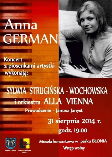 31 sierpnia o godz. 19.00 na scenie muszli koncertowej w parku Błonia w Łowiczu Sylwia Strugińska-Wochowska z orkiestrą Alla Vienna zaprezentuje piosenki Anny German. Podczas koncertu usłyszymy m.in. Tańczące Eurydyki, Zakwitnę różą, Człowieczy los, Wróć do Sorrento oraz wiele innych. Koncert poprowadzi Janusz Janyst.