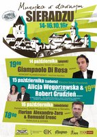 W dniach 14-16 października w Sieradzu odbędzie się cykl koncertów pod hasłem "Muzyka w dawnym Sieradzu". W programie: koncert klawesynowy w wykonaniu Giampaolo Di Rosy (14 X, godz. 19.00), koncert Alicji Węgorzewskiej i Roberta Grudnia (15 X, godz. 19.00), a także Floriana Alexandru-Zorna i Romualda Erenca (16 X, godz. 19.00). Wstęp wolny!