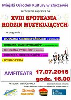 W najbliższą niedzielę - 17 lipca od godz. 16.00 w Złoczewskim Amfiteatrze odbędą się koncerty zorganizowane przez Miejski Ośrodek Kultury w Złoczewie. Koncertować będzie rodzina Cembrzyńskich z Wróblewa, Rodzina Wawrzyniaków ze Zduńskiej Woli, Rodzina Pyrków z Kalisza, a także Rodzina Dondziaków z Łodzi. Imprezę zakończy dyskoteka pod chmurką. Wstęp wolny!