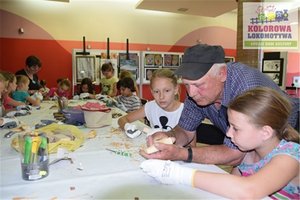 4 lipca Kolorowa Lokomotywa zawitała do Centrum Kultury i Sztuki w Skierniewicach, gdzie podopieczni placówki uczestniczyli w warsztatach papieroplastyki, rzeźby i plecionkarstwa.