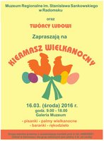 Z okazji zbliżających się Świąt Wielkanocnych Muzeum Regionalne im. Stanisława Sankowskiego w Radomsku we współpracy z twórczyniami ludowymi organizuje kiermasz rękodzieła ozdób świątecznych. W tym roku kiermasz odbędzie się 16 marca (środa), w godz. 9.00 – 18.00.