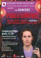 1 kwietnia na scenie ŁDK po raz pierwszy w Polsce wystąpi Pablo Gimenez - znakomity wykonawca klasycznej muzyki hiszpańskiej i wirtuoz muzyki flamenco. Artysta mając 8 lat uczył się w Konserwatorium Superior Victoria Eugenia w Granadzie, studiował również w Konserwatorium Superior Rafael Orozco w Kordobie.
