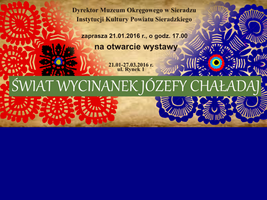 Muzeum Okręgowego w Sieradzu zaprasza 21 stycznia o godzinie 17:00 na otwarcie wystawy „Świat wycinanek Józefy Chaładaj”. Wystawa będzie czynna do 27 marca br.