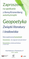 Jeśli nie jest Wam obojętna współczesna humanistyka i chcielibyście usłyszeć kilka ważnych słów na jej temat, nie może Was zabraknąć na spotkaniu z Anną Kronenberg, autorką książki Geopoetyka. Związki literatury i środowiska. Spotkanie odbędzie się 4 listopada o godzinie 18 w klubie Niebostan przy ulicy Piotrkowskiej 17 w Łodzi.