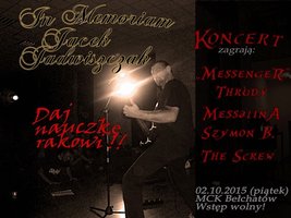 Już 2 października o godz. 18.00 w Miejskim Centrum Kultury w Bełchatowie odbędzie się koncert pamięci Jacka Jadwiszczaka – świetnego nauczyciela, charyzmatycznego muzyka, społecznika i fantastycznego kolegi, który zmarł w marcu br. Podczas koncertu zagrają zespoły: Messalina, Szymon B., The Screw, Thrudy i Messenger . Wydarzeniu towarzyszyć będzie będzie hasło: „Daj nauczkę rakowi!