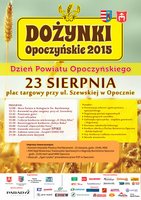 23 sierpnia o godz. 12.00 na placu targowym przy ul. Szewskiej w Opocznie rozpoczną się Dożynki Opoczyńskie 2015. W programie Msza Święta, korowód, konkurs wieńcowy "O Złoty Kłos", Festiwal "Opoczyńska Nuta", a także koncerty i zabawa taneczna. Zachęcamy do zapoznania się ze szczegółami.