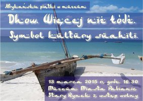 Muzeum Miasta Pabianic zaprasza 13 marca o godz. 16.30 na czwarte spotkanie z cyklu "afrykańskie piątki w muzeum". Tym razem opowieść dotyczyć będzie dhow - łodzi charakterystycznych dla wybrzeża suahili (Kenia, Tanzania). W programie prezentacja multimedialna oraz możliwość zobaczenia dhow na żywo. Wstęp wolny!