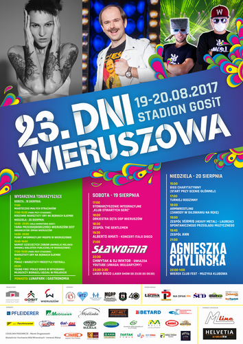 Gmina Wieruszów, Wieruszowski Dom Kultury oraz Gminny Ośrodek Sportu i Turystyki w Wieruszowie zapraszają na pełne atrakcji 23. Dni Wieruszowa, które odbędą się na stadionie miejskim 19-20.08.2017 r.