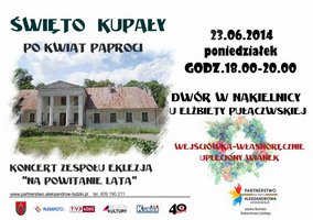 Partnerstwo na rzecz Aleksandrowa zaprasza na Święto Kupały, które odbędzie się 23 czerwca o godz. 18.00 na terenie parku dworu w Nakielnicy. W programie koncert "Na powitanie lata" w wykonaniu zespołu Eklezja, poszukiwanie kwiatu paproci, opowieści o nocy świętojańskiej przy ognisku i puszczanie wianków. Wejściówką jest własnoręcznie upleciony wianek.
