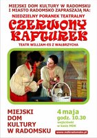 Miejski Dom Kultury i Miasto Radomsko 4 maja o godz. 10.30 zapraszają wszystkich małych miłośników teatru na Niedzielny Poranek Teatralny – Czerwony Kapturek w wykonaniu Teatru William-Es z Wałbrzycha.
