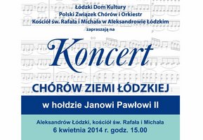 6 kwietnia o godz. 15.00 w kościele św. Rafała i Michała w Aleksandrowie Łódzkim odbędzie się KONCERT CHÓRÓW ZIEMI ŁÓDZKIEJ - w hołdzie Janowi Pawłowi II. Wstęp wolny!