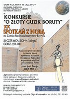 XX SPOTKANIA Z MODĄ, organizowane przez Dom Kultury w Łęczycy na Zamku Królewskim 21 czerwca br., to jedna z ważniejszych imprez kulturalnych w mieście. W ramach spotkań odbędzie się konkurs dla nieprofesjonalnych projektantów mody, którzy zawalczą o Złoty Guzik Boruty. W tym roku impreza będzie miała specjalny i uroczysty charakter ze względu na obchodzony podwójny jubileusz – 20-lecie Spotkań z Modą i 60-lecie istnienia Domu Kultury w Łęczycy.