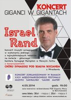 Miejskie Centrum Kultury w Bełchatowie zaprasza koncert muzyki synagogalnej w wykonaniu jednego z najwybitniejszych tenorów na świecie – Israela Randa, który odbędzie się już 4 maja w nowej sali teatralno-widowiskowej Gigantów Mocy Miejskiego Centrum Kultury w Bełchatowie. Bilety w cenie: 20-30zł .
