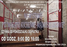 23 listopada br. w siedzibie Regionalnego Centrum Rozwoju Kultury i Turystyki w Działoszynie miało miejsce otwarcie wystawy pt. „Makatki kuchenne – mądrości ludowe”. Na wystawie zaprezentowano 117 makatek zarówno tych tradycyjnych wyhaftowanych, jak i tych drukowanych.