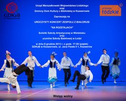 Gminny Dom Kultury z Biblioteką w Ksawerowie zaprasza na występ zespołu "NA ROZSTAJACH" z Białorusi oraz uczniów szkoły baletowej z Łodzi. Koncert odbędzie się 6 grudnia o godz. 17.00 w GDKZB w Ksawerowie.