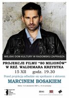 15 grudnia o godz. 19.30 w Miejskim Domu Kultury w Radomsku odbędzie się projekcja filmu "80 milionów" w reżyserii Waldemara Kszystka. Projekcję poprzedzi spotkanie z MARCINEM BOSAKIEM - popularnym aktorem filmowym i teatralnym.