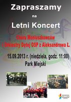Partnerstwo na Rzecz Aleksandrowa Łódzkiego zaprasza 15 września o godz. 11.00 na ostatni Letni Koncert w Parku Miejskim w Aleksandrowie Łódzkim w wykonaniu chóru Moniuszkowców i Orskiestry Dętej OSP.