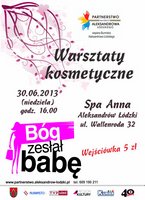 30 czerwca Partnerstwo na Rzecz Aleksandrowa Łódzkiego zaprasza na warsztaty kosmetyczne z cyklu "Bóg zesłał babę", które odbędą się 30 czerwca o godz. 16.00 w Zakładzie Kosmetycznym Spa Anna w Aleksandrowie Łódzkim. W programie szkoła makijażu i porady pielęgnacyjne.