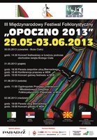 Miejski Dom Kultury w Opocznie serdecznie zaprasza na III Międzynarodowy Festiwal Folklorystyczny Opoczno 2013, który odbędzie się w dniach 29 maja - 3 czerwca. W programie m.in. Przegląd Dziecięcych i Młodzieżowych Zespołów Folklorystycznych, parady uliczne z tańcem i śpiewem, a także koncerty festiwalowe.
