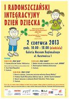 Stowarzyszenie Rodziców i Opiekunów Osób Niepełnosprawnych „KONICZYNKA” oraz Muzeum Regionalne im. Stanisława Sankowskiego w Radomsku zapraszają na I RADOMSZCZAŃSKI INTEGRACYJNY DZIEŃ DZIECKA, który odbędzie się w dniu 2 czerwca 2013r. (niedziela) w godz. 10.00-18.00 w Muzeum Regionalnym w Radomsku.