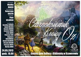 Gminny Dom Kultury z Biblioteką w Ksawerowie zaprasza na inscenizację powieści L. Franka Bauma "Czarnoksiężnik w Krainie Oz". Przedstawienie odbędzie się w piątek 24 maja o godzinie 18.00 w GDKZB w Ksawerowie. Wstęp wolny!