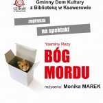 Gminny Dom Kultury z Biblioteką w Ksawerowie serdecznie zaprasza na dramat Yasminy Rezy "Bóg Mordu" w reżyserii Moniki Marek. Spektakl odbędzie się 16 maja o godz. 19.00. Wstęp wolny .