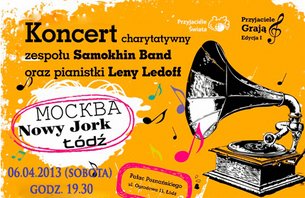 6 kwietnia o godzinie 19.30 odbędzie się w Muzeum Miasta Łodzi koncert charytatywny zespołu Samokhin Band oraz pianistki Leny Ledoff współorganizowany przez Fundację "Przyjaciele Świata". Wszystkie zebrane fundusze zostaną przeznaczone na dzieci z chorobami kardiologicznymi leczone w Centrum Zdrowia Matki Polki oraz dzieci niepełnosprawne z Zespołu Szkół Specjalnych nr 7 w Łodzi.