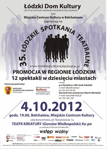 Kolejna odsłona Łódzkich Spotkań Teatralnych nastąpi w Bełchatowie. „Ku Pa” Teatru Kreatury - spektakl inspirowany rysunkami Marka Raczkowskiego z wykorzystaniem tekstów Sylwii Plath i Sławomira Mrożka - zostanie pokazany 4 października o g. 19 w Miejskim Centrum Kultury (pl. Narutowicza 1a).