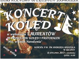 Dom Kultury w Łęczycy serdecznie zaprasza na uroczyste wręczenie nagród i koncert laureatów III Przeglądu Kolęd i Pastorałek "Hej w Dzień Narodzenia", który odbędzie się 6 stycznia (w niedzielę) o godzinie 14.00 w Kościele Św. Andrzeja w Łęczycy.