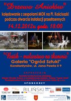 Zapraszamy 14 grudnia o godz. 18.00 do Miejskiego Ośrodka Kultury w Konstantynowie Łódzkim (pl. Kościuszki) na wspólne kolędowanie z zespołami konstantynowskiego MOKu, które będzie towarzyszyło otwarciu instalacji przestrzennych "Drzewo Aniołów" i wernisaż wystawy "Batik - malarstwo na tkaninie.