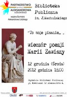 Partnerstwo na rzecz Aleksandrowa oraz Biblioteka Publiczna im.Jana Machulskiego (pl.Kościuszki 12) zapraszają 12 grudnia w środę o godz.18.00 na spotkanie z aleksandrowską poetką Maria Zawiszą.
