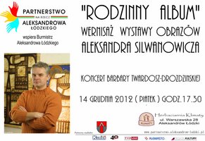 14 grudnia 2012 (piątek) o godz.17.30 w Herbaciarni Klimaty (Aleksandrów Ł. ul.Warszawska 28) otworzymy wystawę obrazów białoruskiego artysty Aleksandra Silwanowicza. Wernisaż swoim występem uświetni śpiewaczka Barbara Twardosz.