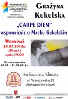 "Carpe Diem", wspomnienie o Maćku Kukulskim, wystawa rysunków Grażyny Kukulskiej. Wenisaż 20.07.2012 (piątek) godz.19.00 w Herbaciarni "Klimaty" w Aleksandrowie Łódzkim (ul.Warszawska 28).