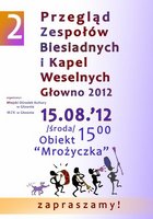 Miejski Ośrodek Kultury w Głownie rozpoczął nabór uczestników II Przeglądu Zespołów Biesiadnych i Weselnych Głowno 2012. Impreza zaplanowana została w plenerze na terenie rekreacyjnym nad zalewem „Mrożyczka” w Głownie na 15 sierpnia. Początek prezentacji wyznaczono na godz. 15.00.