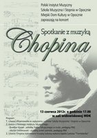 Polski Instytut Muzyczny w Łodzi i Szkoła Muzyczna I Stopnia w Opocznie Miejski Dom Kultury w Opocznie zapraszają na koncert „Spotkanie z muzyką Chopina”, który odbędzie się 13 czerwca 2012r w sali widowiskowej MDK. Koncert rozpocznie się o godzinie 17.00.