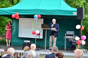 Po tanecznym wstępie przyszła pora na przypomnienie działań i sukcesów CPiK. O historii i latach działalności opowiadał gościom redaktor naczelny tygodnika "BIS" Michał Gołąbek. Widzowie mogli obejrzeć prezentację multimedialną, na której przedstawiono fotografie dokumentujące różne wydarzenia. Na scenie pojawił się także burmistrz miasta Marcin Pluta. W kilku słowach opowiedział historię powstania Centrum, pierwsze lata działalności, a także podziękował także byłym dyrektorom: Monice Hibner, Agacie Tracz, Katarzynie Spychalskiej oraz Michałowi Gołąbkowi i życzył sukcesów obecnej dyrektor Ewie Kalińskiej. Pani dyrektor wręczyła poprzednikom kwiaty. Po zakończeniu prezentacji, goście zostali zaproszeni do budynku CPiK na wystawę obrazów Wiesławy Piotrowskiej, lokalnej artystki, absolwentki łódzkiej Akademii Sztuk Pięknych. Po artystycznej części jubileuszu, pani dyrektor zaprosiła wszystkich pod scenę przed budynkiem CPiK, gdzie zgromadzonych bawiła muzyką DJ Wika - energiczna kobieta, która mimo 77 lat, mogłaby zawstydzić niejednego młodego człowieka. Goście bawili się świetnie, dobra atmosfera towarzyszyła do końca imprezy.