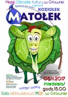 W niedzielę, 5 listopada, Miejski Ośrodek Kultury w Głownie zaprasza dzieci na spektakl pt. "Koziołek Matołek" przygotowany przez Akademicki Ośrodek Inicjatyw Artystycznych w Łodzi. Początek spektaklu zaplanowano na godz. 15.00. Wstęp wolny!
