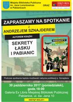 Miejska Biblioteka Publiczna im. Jana Lorentowicza w Pabianicach 30 paździenika o godz. 18.00 zaprasza na spotkanie z Andrzejem Sznajderem, absolwentem łódzkiej germanistyki, autorem m.in. "Sekretów Sieradza i Zduńskiej Woli". Podczas spotkania będzie promował swoją najnowszą książkę "Sekrety Łasku i Pabianic". Wstęp wolny!