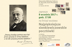 Wojewódzka Biblioteka Publiczna im. Marszałka Józefa Piłsudskiego w Łodzi 8 września o godz. 17.00 zaprasza na finisaż wystawy „Najpiękniejsze sienkiewiczowskie pocztówki” ze zbiorów kolekcjonerskich m. in. Andrzeja Chmielewskiego i Jana Zduńczyka z Żelechowa, Henryka Pięty z Łowicza, Marcelego Węgrzynowicza ze Skierniewic.