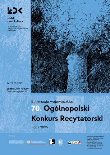 Już wkrótce w Łódzkim Domu Kultury w siedzibie tymczasowej przy ul. Dowborczyków 18 odbędą się eliminacje miejskie, a później wojewódzkie, jubileuszowego 70. Ogólnopolskiego Konkursu Recytatorskiego.