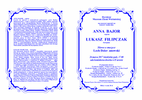Muzeum Ziemi Wieluńskiej 26 marca o godz. 17.00 zaprasza na koncert kameralny w zabytkowym Dworku w Ożarowie. Wykonawcy: Anna Bajor (sopran) i Łukasz Filipczak (fortepian). Słowo o muzyce: Lech Dzierżanowski.