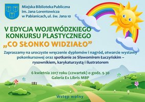 Po raz piąty uczniowie podstawowych szkół specjalnych województwa łódzkiego będą mogli wykazać się talentem i wyobraźnią za sprawą organizowanego przez Bibliotekę dla Dzieci i Młodzieży w Pabianicach konkursu plastycznego zatytułowanego „Co słonko widziało”. Zadaniem uczestników jest zilustrowanie wybranego wiersza Marii Konopnickiej kredkami ołówkowymi. Termin nadsyłania prac mija 27 marca.