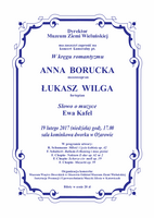 19 lutego o godz. 17.00 Muzeum Ziemi Wieluńskiej zaprasza na koncert kameralny "W kręgu romantyzmu", który odbędzie się w zabytkowym dworku w Ożarowie. Wystąpią: Anna Borucka (mezzosopran), Łukasz Wilga (fortepian). Słowo o muzyce: Ewa Kafel.