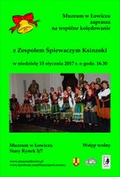 Muzeum w Łowiczu zaprasza do wspólnego kolędowania z Zespołem Śpiewaczym Ksinzoki. Koncert odbędzie się w niedzielę 15 stycznia 2017 r. o godz. 16.30 w sali barokowej muzeum. Wstęp wolny.