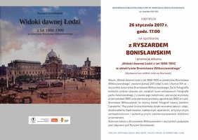Wojewódzka Biblioteka Publiczna im. Marszałka Józefa Piłsudskiego w Łodzi 26 stycznia o godz. 17.00 zaprasza na spotkanie z Ryszardem Bonisławskim i promocję albumu „Widoki dawnej Łodzi z lat 1888-1900 w obiektywie Bronisława Wilkoszewskiego”. Wstęp wolny!