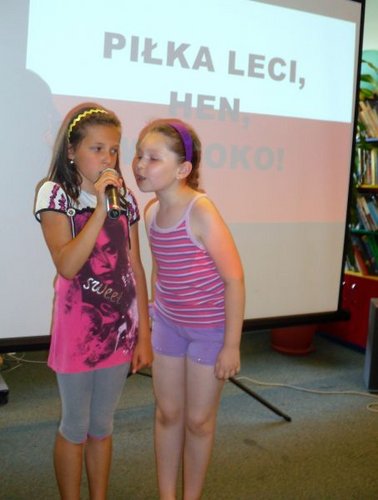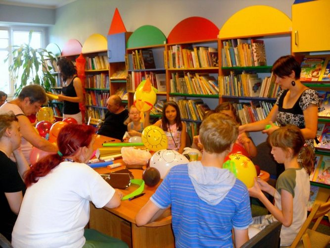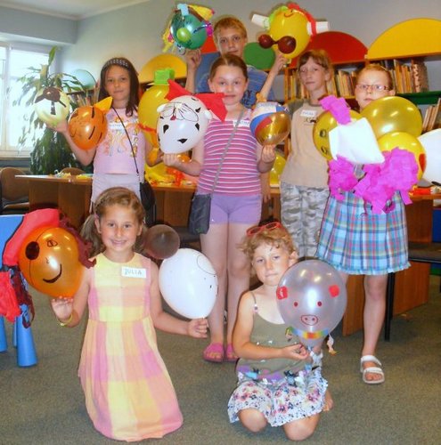 Kolejne dni, obfitującego w atrakcje, wakacyjnego programu upłynęły na rozwijaniu kreatywności i doskonaleniu umiejętności plastycznych i muzycznych. Uczestnicy mieli za zadanie „ożywić balon”, czyli stworzyć z niego to, co tylko podsunie im wyobraźnia. I tak powstały różnorakie zwierzątka – kotki, pieski, tygrys, a nawet kaczka dziwaczka. Powstałe prace można oglądać w czytelni dla dzieci. Śpiewająco zakończyliśmy tydzień letniej akcji, ponieważ dzieci z radością i wypiekami na twarzy, przystąpiły do konkursu karaoke. Repertuar był przeróżny, zaczynając od piosenek polskich i zagranicznych artystów, a kończąc polskim hymnem EURO 2012 :„Koko Euro spoko” . Na dalszy ciąg atrakcji przygotowanych przez łaską bibliotekę dla dzieci zapraszamy wszystkich chętnych, lubiących dobrą zabawę i niezapomniane przygody
