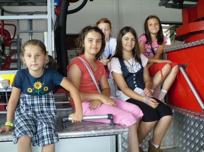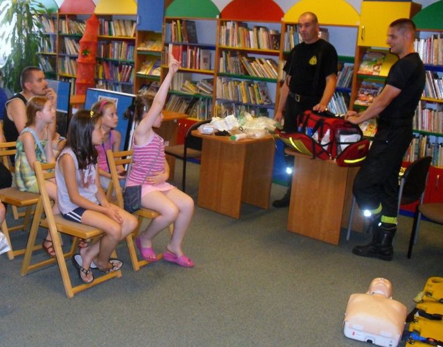 Uczestnicy wakacyjnego programu nie tylko spotkali się ze strażakami w bibliotece. Mundurowi zaprosili ich do swej siedziby – w powiatowej komendzie. Tam przyglądali się pracy pożarnika, zapoznali się z wyposażeniem pojazdów strażackich. Mogli samodzielnie wypróbować omawiane sprzęty, a nawet na własnej skórze sprawdzić temperaturę wody z węża gaśniczego.